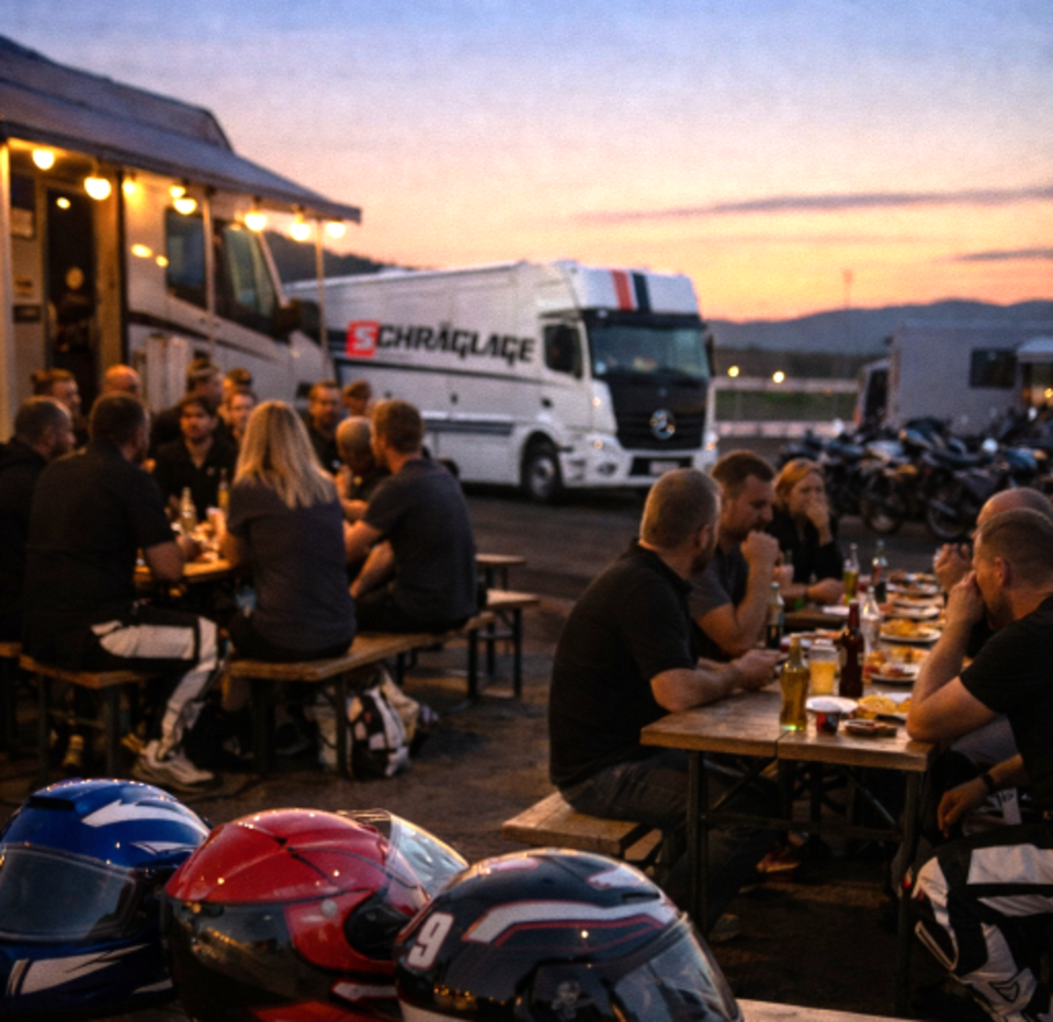 - Ab 23.00 Uhr die allgemeine Nachtruhe auf dem Rennstreckenareal einzuhalten. Jeglicher Lärm (Musik, Motorengeräusche, oä.) sind ab diesem Zeitpunkt verboten und soll im Sinne eines kollegialen Miteinanders vermieden werden.